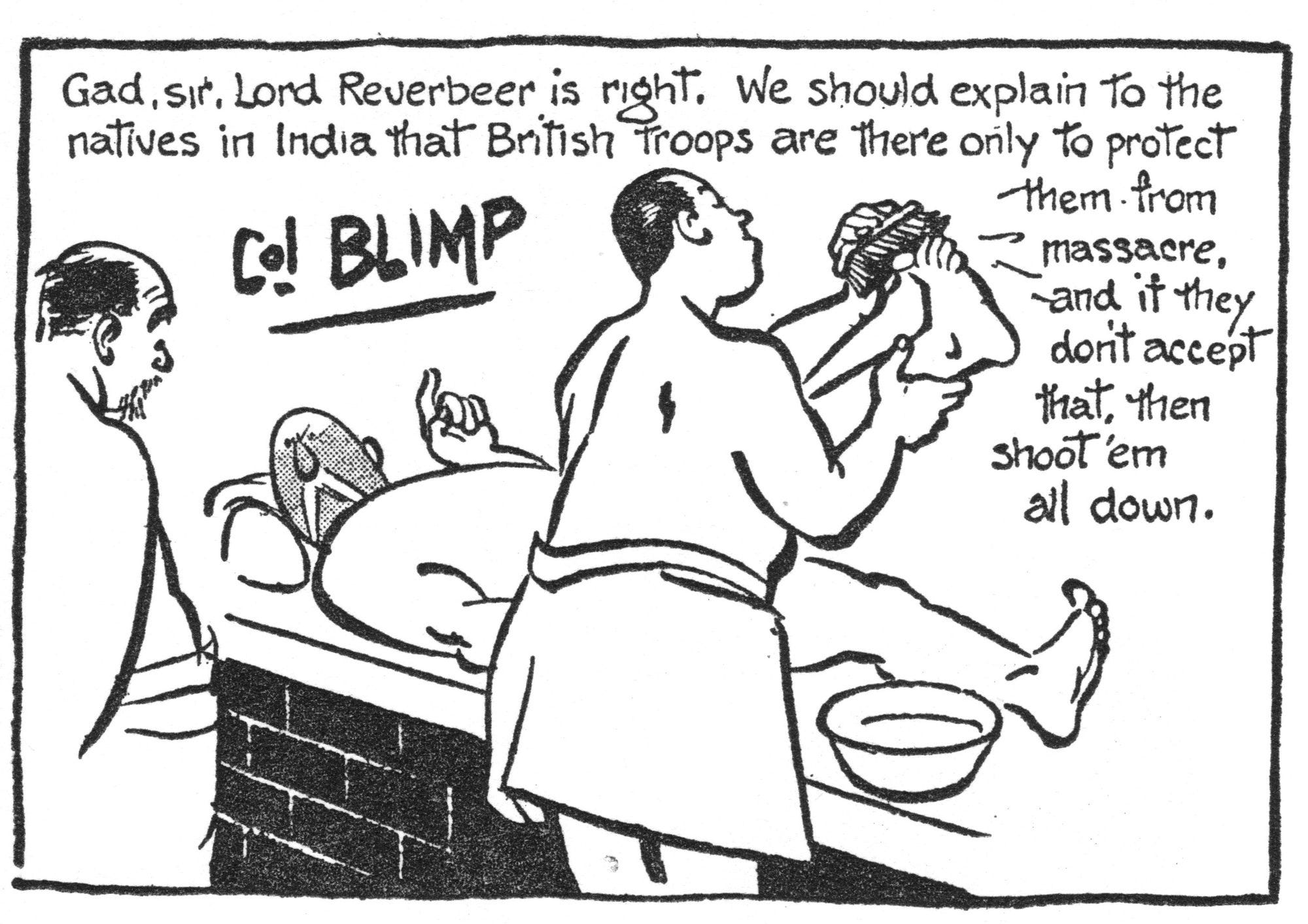“Blimpishness” refers to something like: certain distinctively English qualities of jingoism and traditionalism that can be found in comic proportions in the older members of the middle class (both “Blimp” and “Blimpism” were common enough shorthand references at one time—Orwell makes frequent use of both in his essays that touch on the English character). Colonel Blimp himself was literally a character in a comic strip that ran in London’s Evening Standard back in the 1930s, who was prone to often self-contradictory outbursts of reactionary opinion.